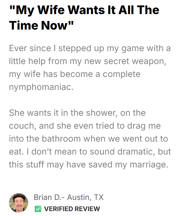 "Never left a review before, but this one deserves it. It’s not just the product. It’s the whole experience. Clean site, fast shipping, and the way they explain what’s happening in your body… it feels like a manual for your manhood."
